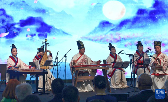 4月14日,表演者在奥地利维也纳联合国城举行的联合国中文日活动中演奏中国传统乐器。新华社发(徐昆摄)